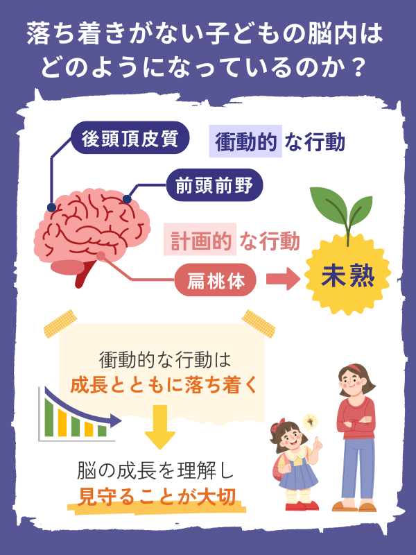 今回は子どもに落ち着きがない原因や、子どもが成長していく中で、衝動的な行動を抑える対策についても紹介します。